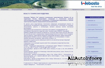 Webasto Data Top 01 / 2011 - Электронный каталог содержит инструкции по установке, обслуживанию, ремонту и эксплуатации, каталоги запасных частей, монтажные рекомендации продукции фирмы Webasto. Продукция, освещаемая в этом каталоге это различные системы автономного отопления и кондиционирования для легковых и коммерческих автомобилей. Для коммерческого транспорта идет под маркой SPHEROS. Информация будет полезна всем, у кого установлено оборудование фирмы, занимается ремонтом и установкой отопителей и просто интересуется новыми моделями их разработок. Вся информация актуальна до выхода следующей версии программы Webasto Data Top 01 / 2011. Язык интерфейса программы русский.