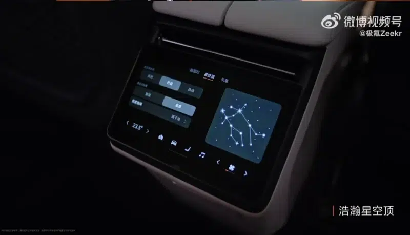 Оформление салона подчёркивает премиальность: поворотный центральный экран, AR-HUD, премиум-материалы, а интерьер с динамическим освещением создает «прозрачный купол со звёздами».