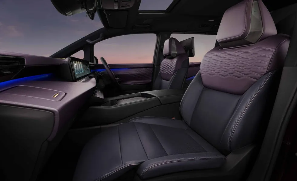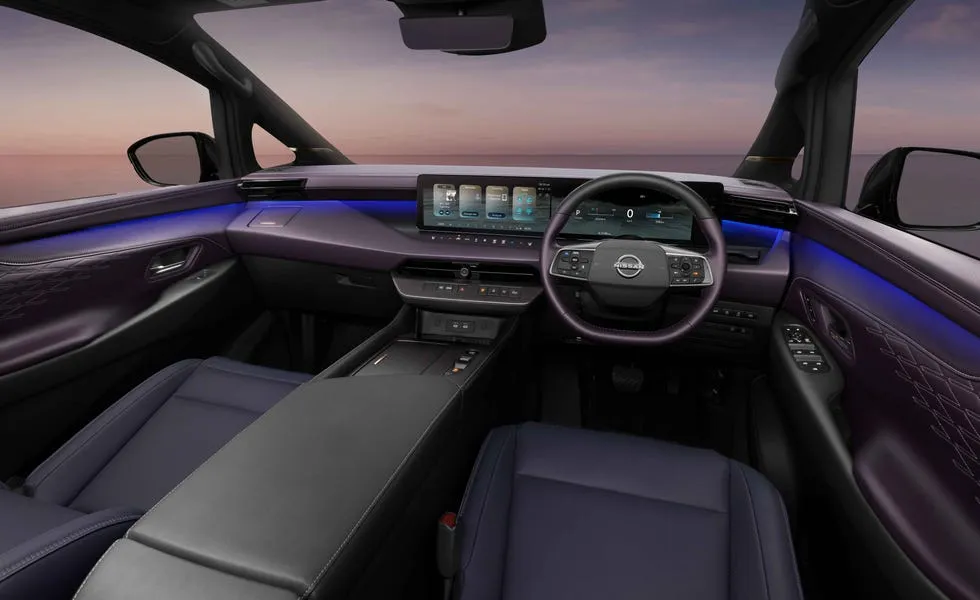 Интерьер Elgrand 4-го поколения предлагает кутюр-подход: два 14,3-дюймовых дисплея на приборной панели, кожаная двухцветная отделка, улучшенные кресла второго ряда с функцией Zero-Gravity, а при заказе — аудиосистема Bose на 22 канала с динамиками в подголовниках. Также отмечены физические органы управления (ручки и кнопки), что подчеркивает премиальный характер.