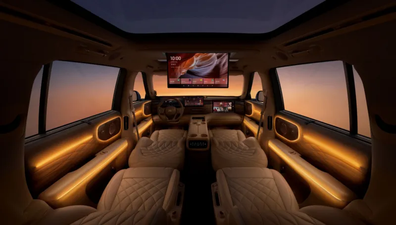 IM LS9 оснащён салоном с компоновкой 2+2+2. Два первых ряда — это кресла повышенного комфорта с подлокотниками и индивидуальными настройками. Третий ряд рассчитан на взрослых пассажиров и подходит для долгих поездок.