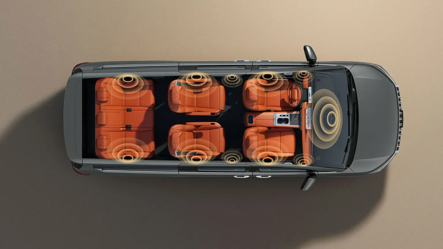 Интерфейс включает цифровую приборную панель, сенсорный центральный экран, беспроводную зарядку для смартфонов и удобные элементы управления — всё ориентировано на комфорт в семейных поездках.
