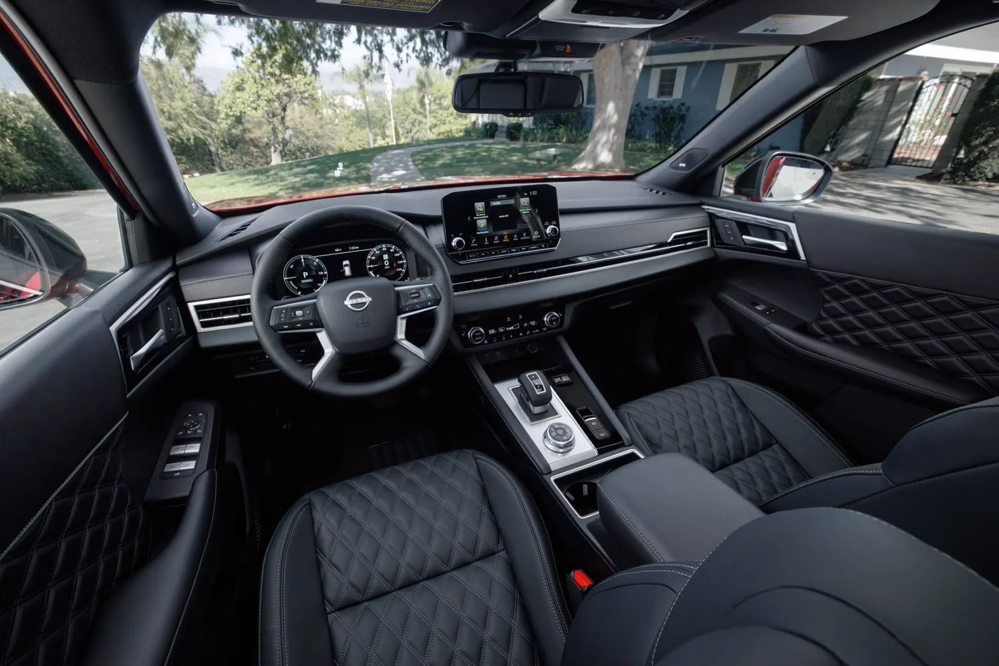 Салон Rogue 2026 стал значительно современнее, сохранив при этом практичность и простор. Центральная панель выполнена в горизонтальном стиле и оснащена увеличенным экраном мультимедийной системы. Цифровая приборная панель с настраиваемыми режимами отображения дополняет визуальную лёгкость интерьера. Материалы отделки включают мягкие ткани и комбинацию кожаных вставок, что создаёт приятную на ощупь и визуально привлекательную атмосферу.
