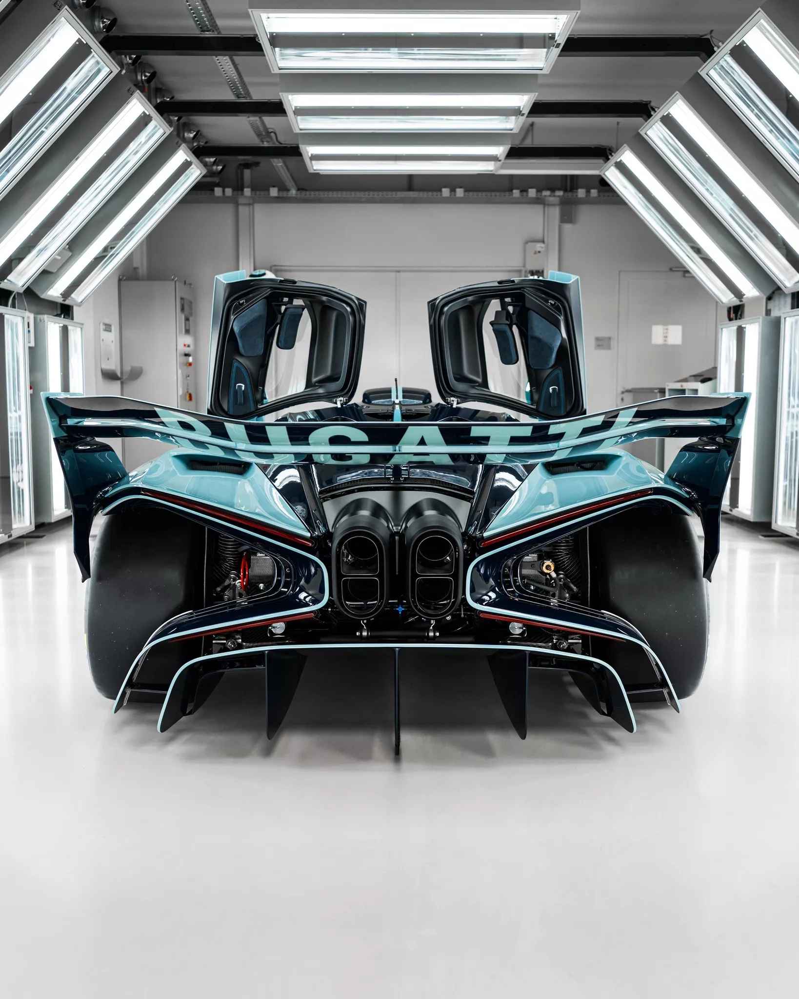 Bolide с самого начала задумывался как машина для закрытых трасс. В отличие от остальных гиперкаров Bugatti, ориентированных на сочетание скорости и роскоши, этот проект — чистая демонстрация возможностей конструкторов, не ограниченных требованиями дорожной эксплуатации. В основе конструкции — карбоновый монокок, разработанный по стандартам высших гоночных категорий, экстремальная аэродинамика и минимум лишнего веса. Итог — около 1450 килограммов, что делает Bolide самым лёгким Bugatti современности.