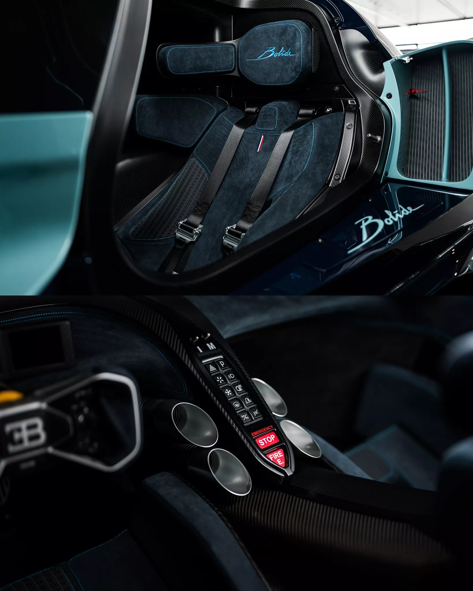 Салон у Bolide полностью подчинён задаче пилотирования. Здесь нет декоративной роскоши — только функциональные элементы, спортивные кресла, компактный руль и цифровая панель, выводящая все параметры работы силовой установки. Каждая машина проходила индивидуальную настройку под будущего владельца, включая положение педального узла, рулевой колонки и жёсткость подвески.