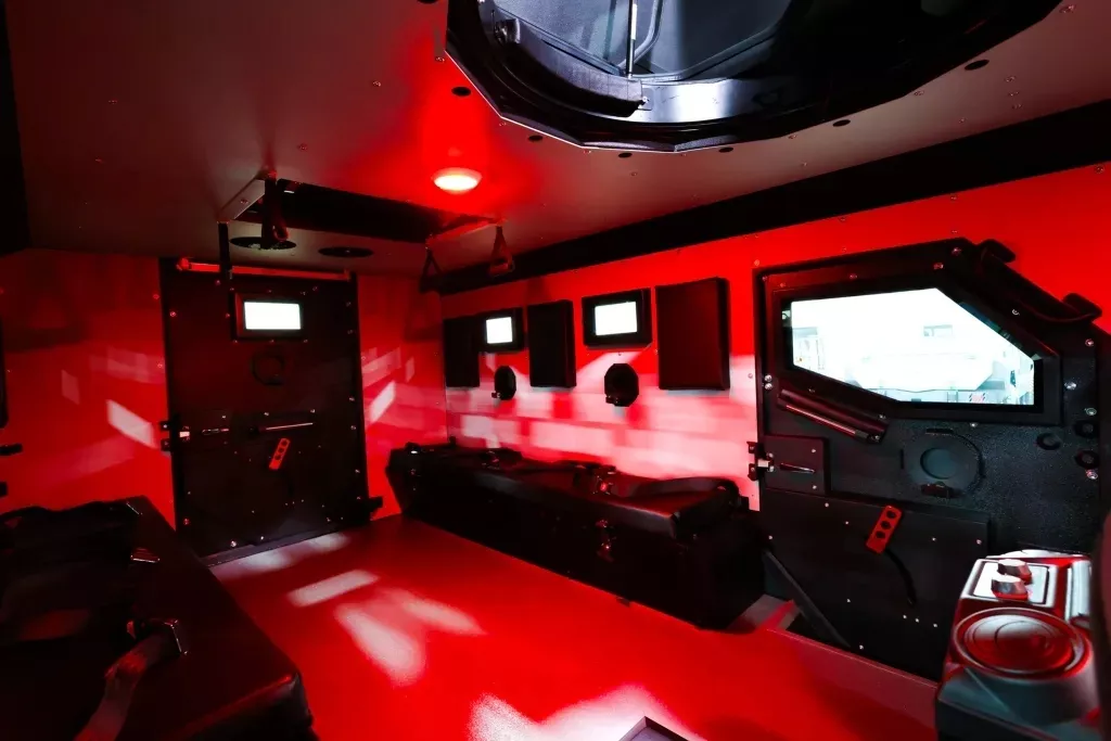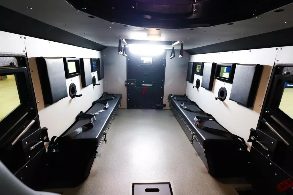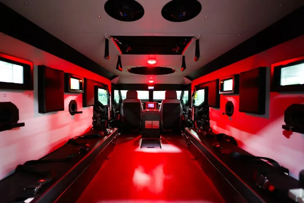 Основой служит рамная конструкция с сертифицированной защитой уровня B6. Такой уровень позволяет выдерживать обстрел из большинства распространённых винтовок, что критически важно для операций в потенциально опасной среде. Дополнительные панели защиты установлены в дверях, крыше и зоне моторного отсека, а стекла выполнены из многослойных пуленепробиваемых блоков.