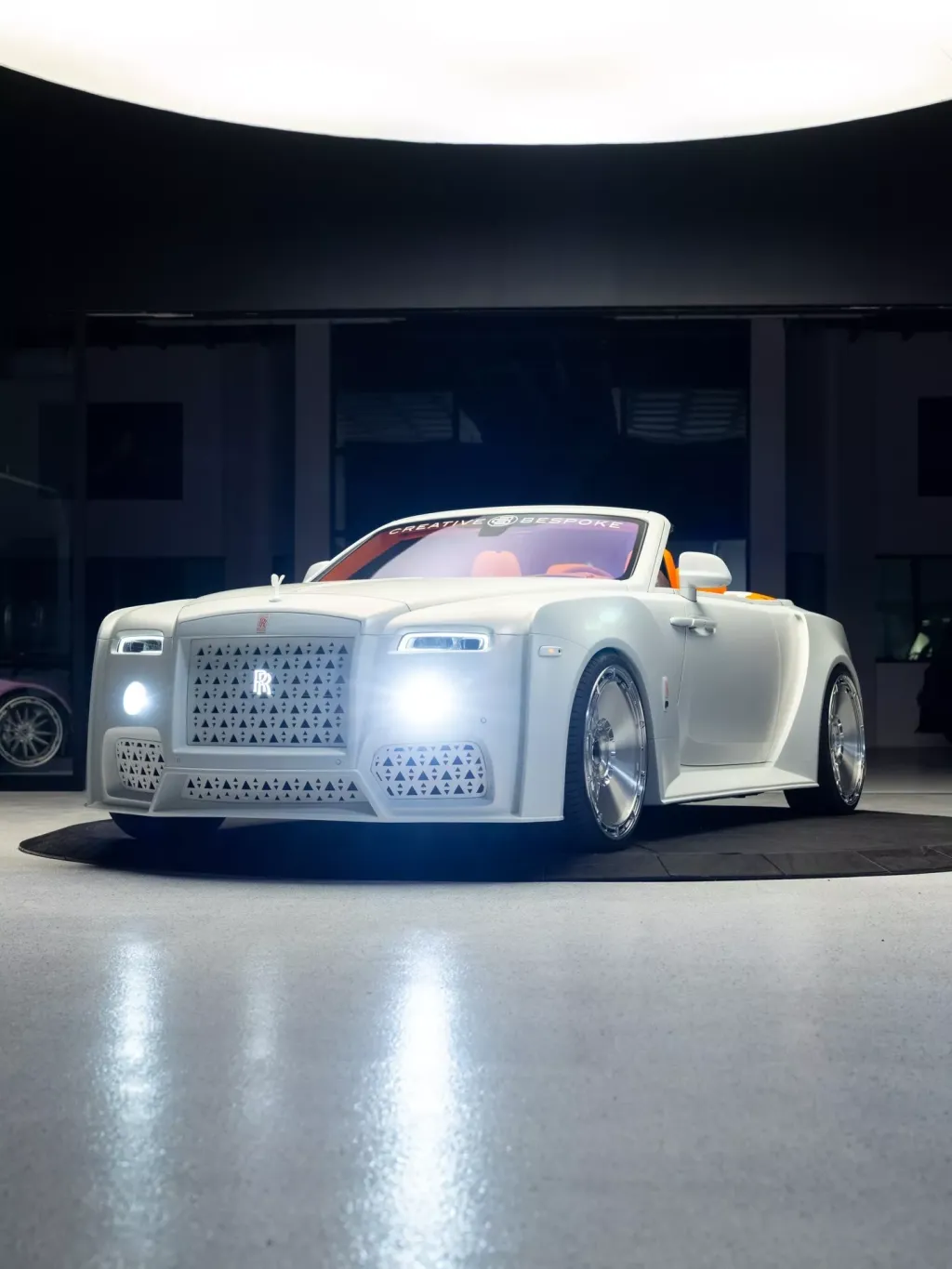 Проект был реализован не в одиночку. Над созданием экстремального облика кабриолета Rolls-Royce Dawn тюнинг-ателье Venuum работало совместно с дизайнерской студией Creative Bespoke, специализирующейся на эксклюзивных кузовных решениях и индивидуальных проектах для автомобилей премиального сегмента. Именно это сотрудничество позволило довести визуальную концепцию до максимально радикального и при этом цельного результата.