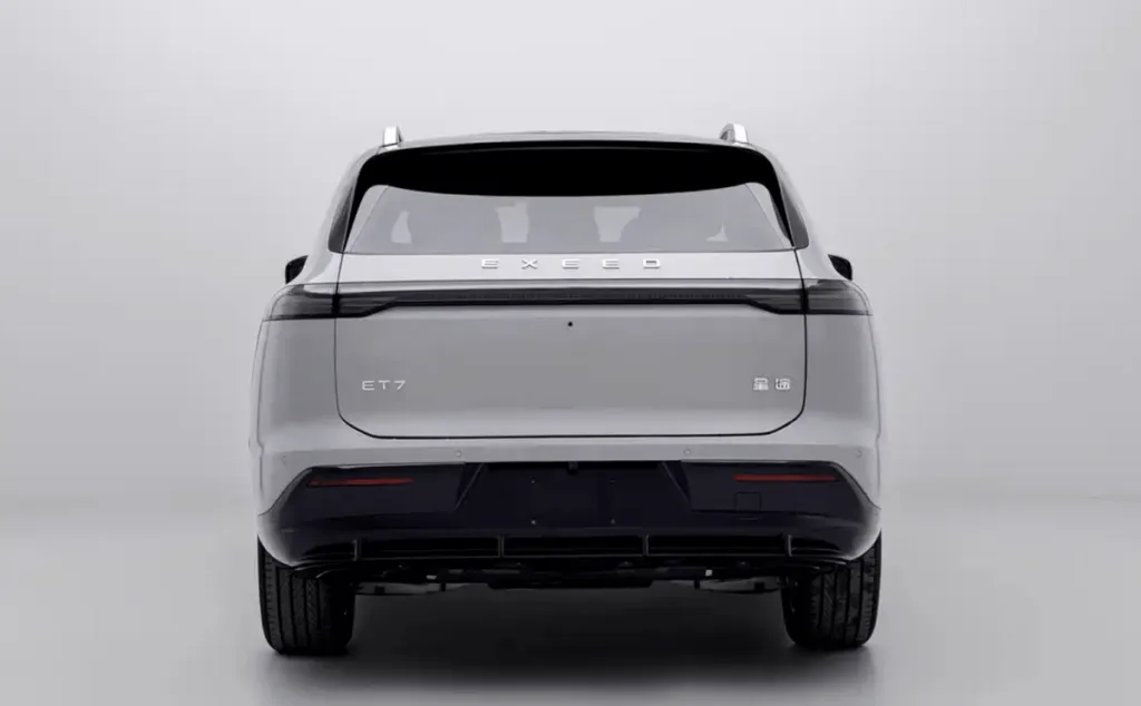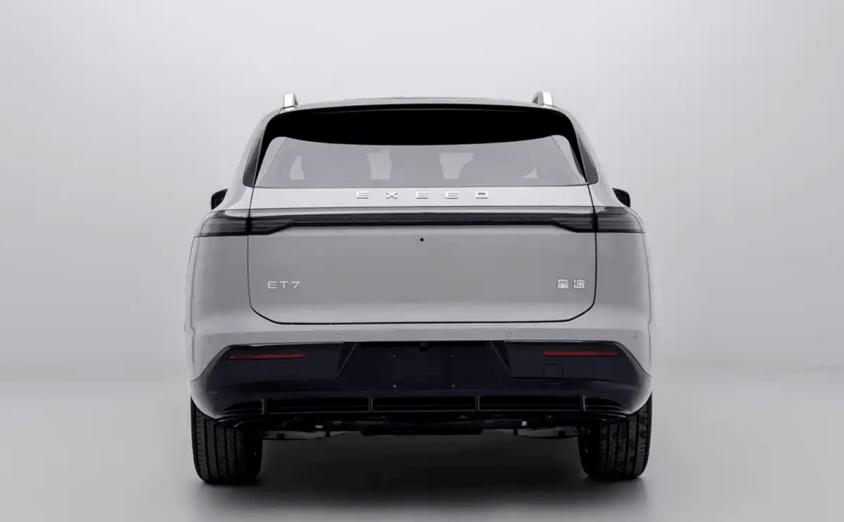 Внешность ET7 выполнена в актуальном для Exeed стиле: закрытая передняя часть, узкая светодиодная оптика, обтекаемый силуэт и акцент на аэродинамику. Кроссовер выглядит сдержанно, но технологично — без агрессии, с явной ориентацией на премиум-аудиторию.