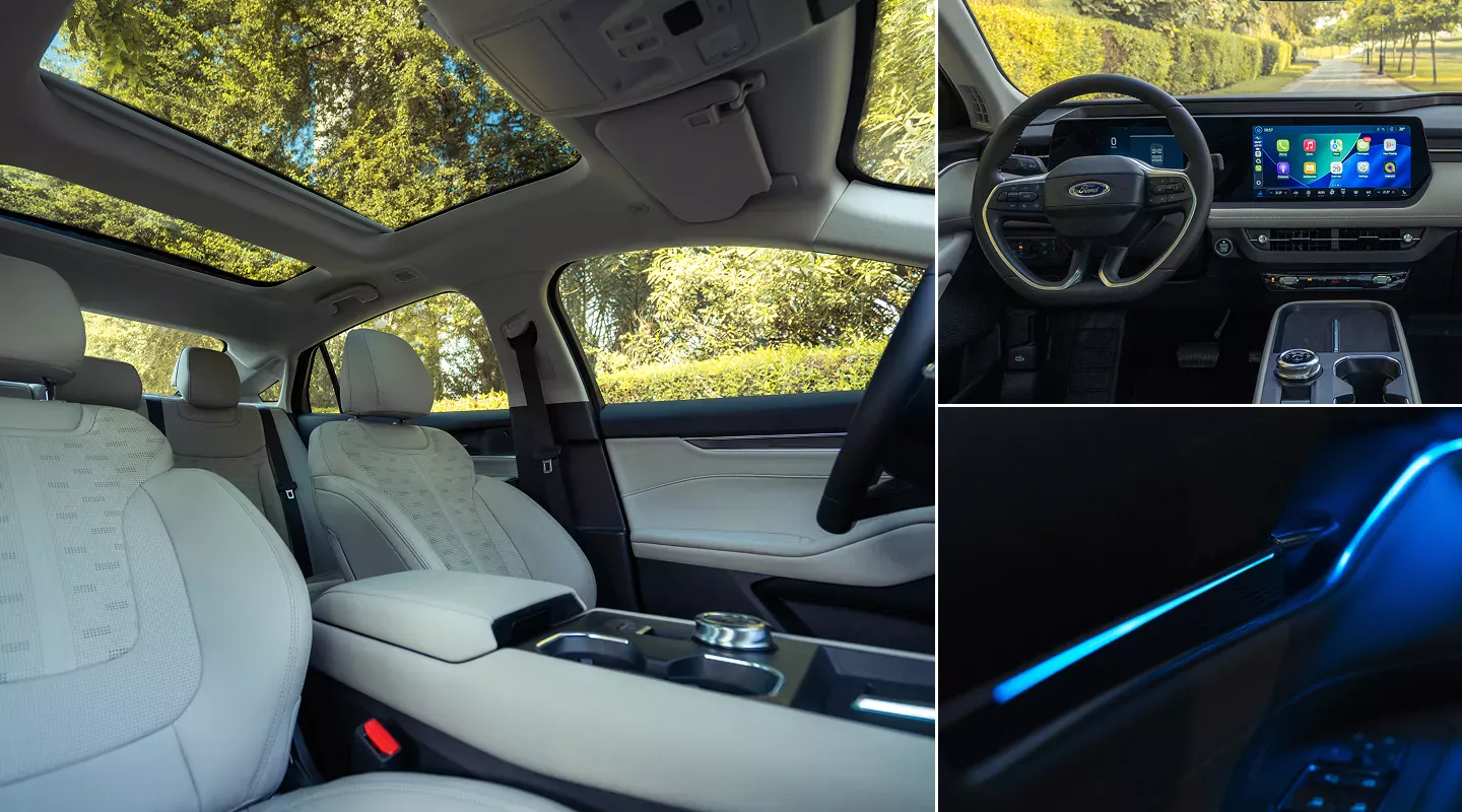 Салон Ford Taurus 2026 выполнен в духе современных моделей марки для Китая. Центральное место занимает крупный цифровой экран мультимедийной системы, объединённый с виртуальной приборной панелью. Улучшенные материалы отделки, расширенный список электронных ассистентов и обновлённое программное обеспечение делают автомобиль более конкурентоспособным на фоне местных китайских седанов.