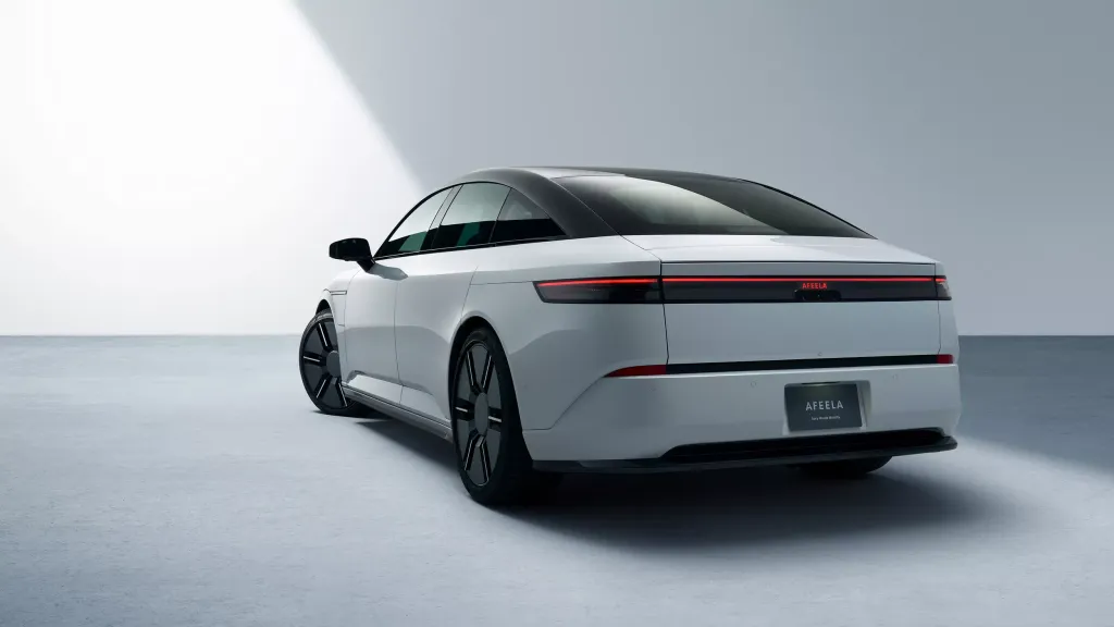 Внешне Afeela 1 выполнен в лаконичном, почти минималистичном стиле. Плавные формы, чистые поверхности и отсутствие агрессивных линий подчёркивают ориентацию модели на премиальный сегмент. Одной из ключевых особенностей стала светодиодная панель спереди, способная отображать информацию, уведомления и даже приветственные сообщения — редкое решение даже по меркам современных электромобилей.