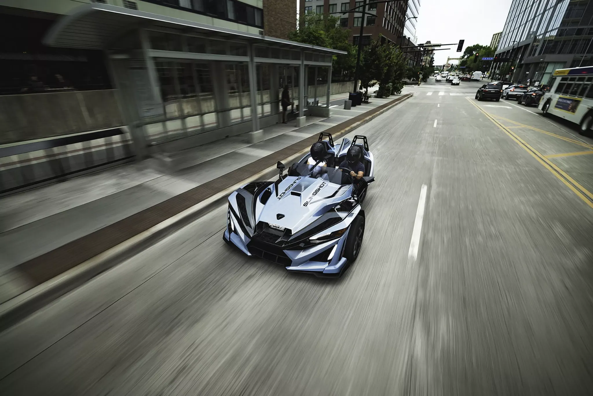 Отдельно стоит отметить «железо» под образной оболочкой. ProStar 2.0 — мотор собственной разработки Polaris, и в варианте на 204 л.с. он обеспечивает Slingshot очень живую динамику. Наличие механической коробки остаётся редкостью для современной развлекательной техники, а AutoDrive рассчитан на тех, кто хочет получать эмоции без постоянной работы рычагом. Спортивный капот с вентиляционными прорезями здесь тоже не только «для вида»: заявлено, что он улучшает аэродинамику и помогает с обдувом кокпита.