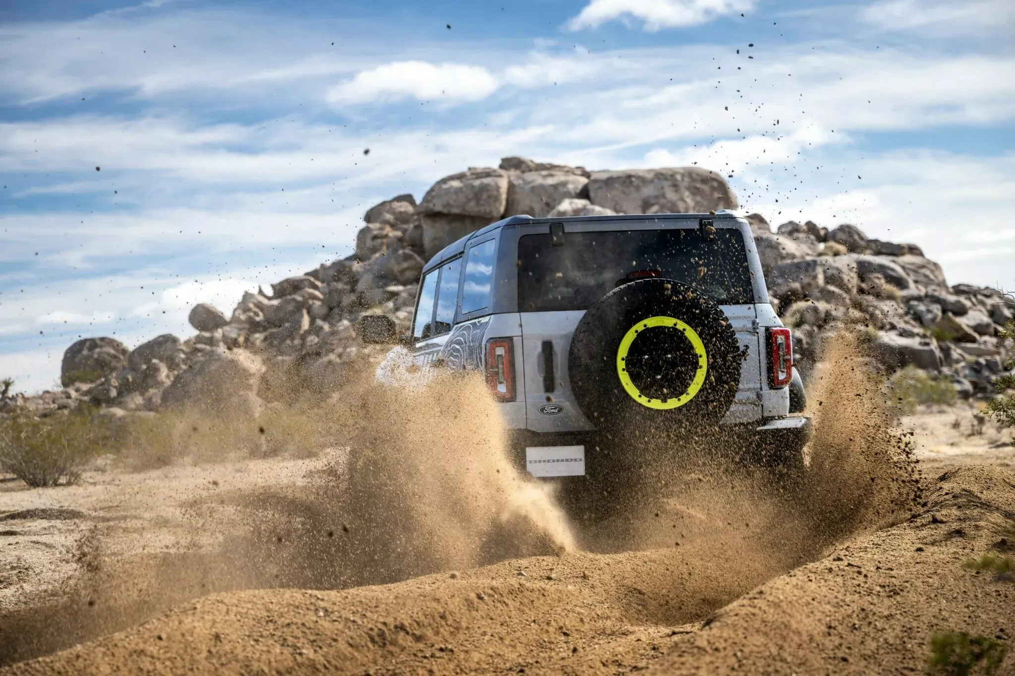 Механическая часть Bronco RTR также отличается от стандартных исполнений. Автомобиль по умолчанию оснащается подвеской с увеличенным дорожным просветом и 33-дюймовыми шинами. Для тех, кто собирается использовать машину заметно жестче, предложены внутренние перепускные амортизаторы FOX и 35-дюймовая резина. Под капотом остается 2,3-литровый четырехцилиндровый двигатель мощностью 300 л.с., однако Ford дополнил его вентилятором системы охлаждения от Bronco Raptor и системой anti-lag, которая должна сделать отклик более острым под нагрузкой. Эти детали важны, потому что они подтверждают: Bronco RTR нельзя считать чисто стилистическим пакетом.