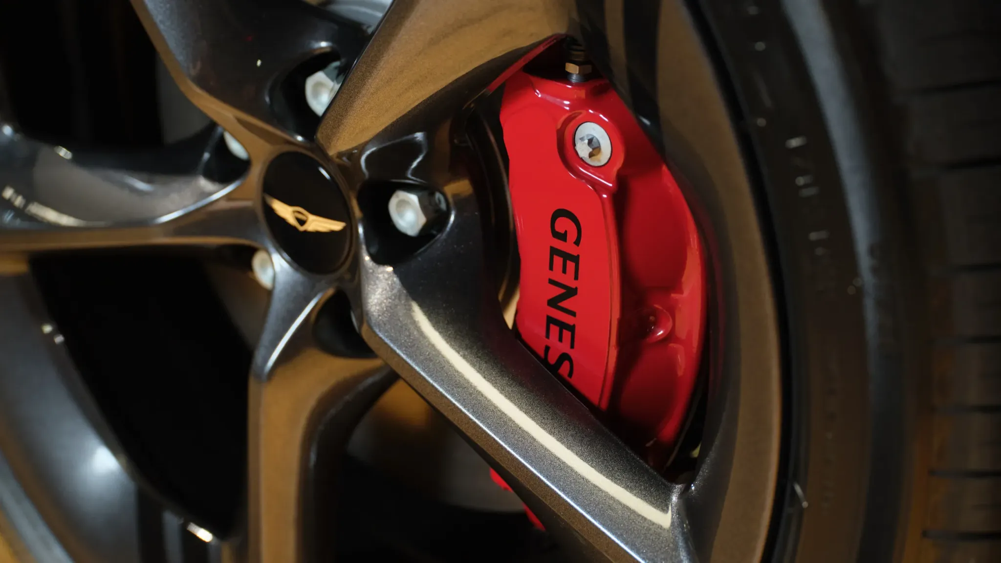 Интерьер выглядит даже более заметным изменением, чем экстерьер. В салоне установлены сиденья Ultramarine Nappa leather с замшевыми вставками, а на подголовниках вытеснены логотипы Genesis. Отделку дополняют карбоновые элементы и уникальная стартовая анимация. Мы заметили красную контрастную прострочку и кант, а также то, что по фото можно предположить наличие замшевой обивки потолка. Последний пункт стоит воспринимать осторожно: это визуальное наблюдение редакции, а не официально заявленная спецификация.