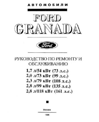 Руководство по ремонту и эксплуатации автомобиля Ford Granada 1985-1994 года выпуска. Техническая документация содержит справочную информацию по устройству, по конструкции, инструкции по ремонту и техническому обслуживанию автомобиля. В издании рассмотрены автомобили, которые комплектовались двигателями объемом 1.7 л / 54 квт (73 л.с), 2.0 л / 73 кВт (99 л.с), 2.3 л / 79 кВт (108 л.с), 2.8 л / 99 кВт (135 л.с) и 2.8 л / 118 кВт (161 л.с). Все инструкции по ремонту содержат описание и фотографии выполняемых технических работ. Полностью описаны все подручные средства и инструменты, которые используются при извлечении, замене и последующей установки узлов и агрегатов автомобиля Ford Granada.