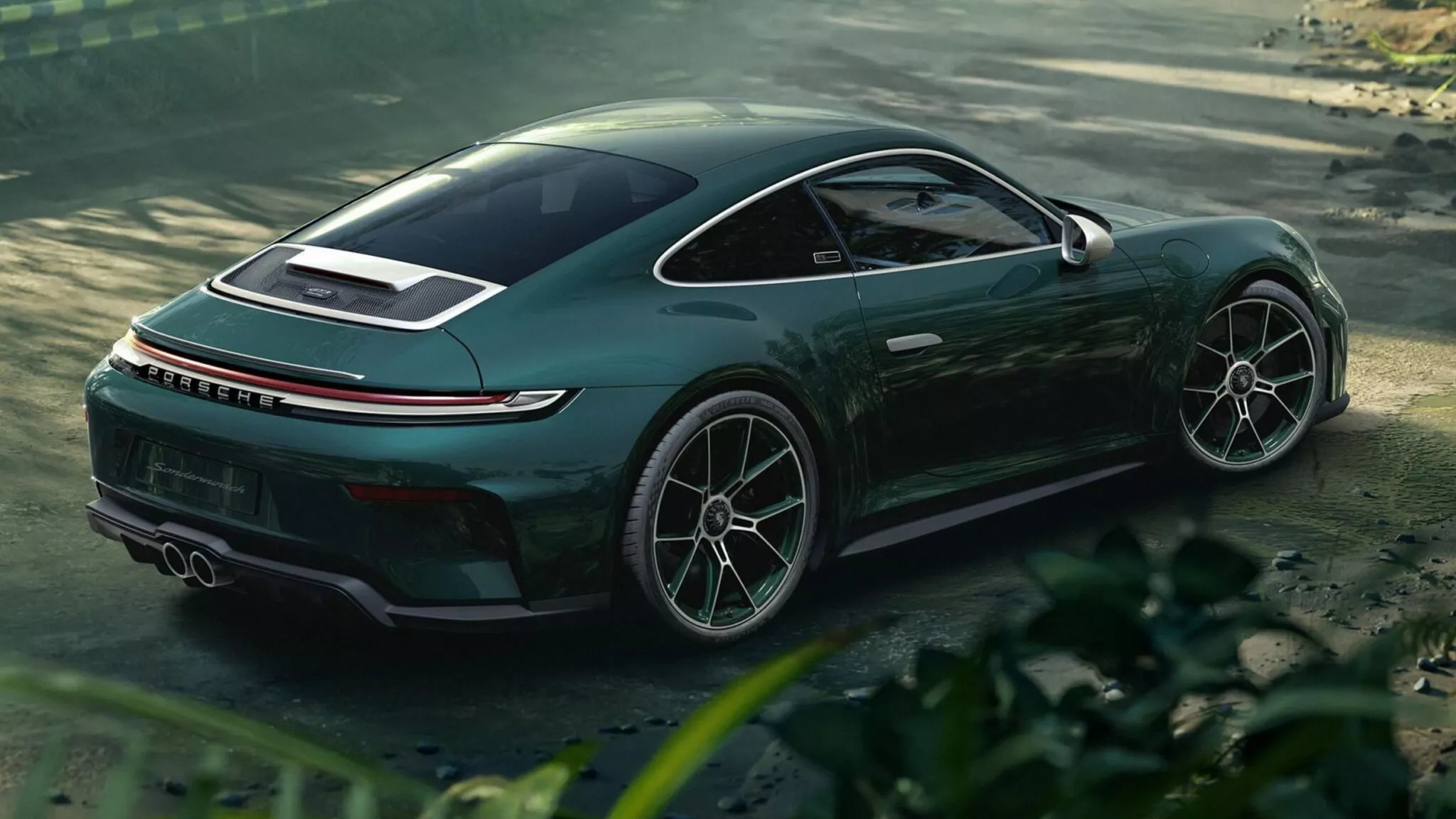 Кузов окрашен эксклюзивным оттенком Forest Green Metallic, специально подбираемым по образу густой зелени тропиков. При разном освещении цвет переливается. Акценты выполнены в Centenaire Silver, отсылая к хромированным деталям первых 911-х.