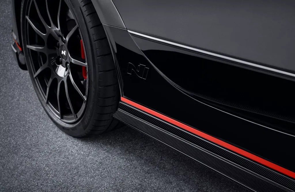 Пакет включает фронтальный спойлер, боковые юбки и расширенный диффузор — все элементы из открытого карбона. По данным Hyundai, материал CFRP обеспечивает высокую жёсткость, малый вес и улучшенную аэродинамику.