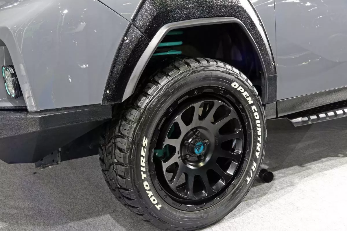 Чтобы образ не расходился с деталями, проект получил чёрные диски и шины Toyo Open Country R/T. За счёт более «грубого» рисунка и подходящей пропорции колёса поддерживают общую идею, а увеличенный дорожный просвет делает силуэт минивэна менее «приземлённым». Подробностей по изменениям подвески не раскрывают, но сама посадка однозначно отличается от стандартной — это видно по расстоянию до земли и общей стойке автомобиля.