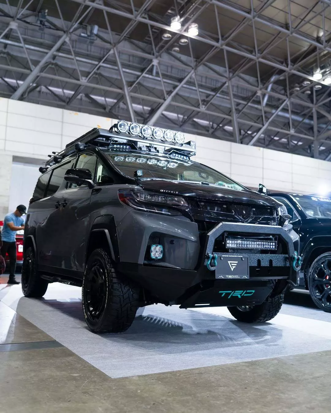 У стандартного Alphard дизайн строится вокруг «парадной» внешности и акцента на комфорте, а здесь настроение другое: больше силовых деталей, больше намёков на утилитарность и поездки за город. Такой подход хорошо работает на выставке: с первого взгляда понятно, что перед тобой не очередной аккуратный минивэн, а автомобиль, который специально сделали заметным и «характерным».
