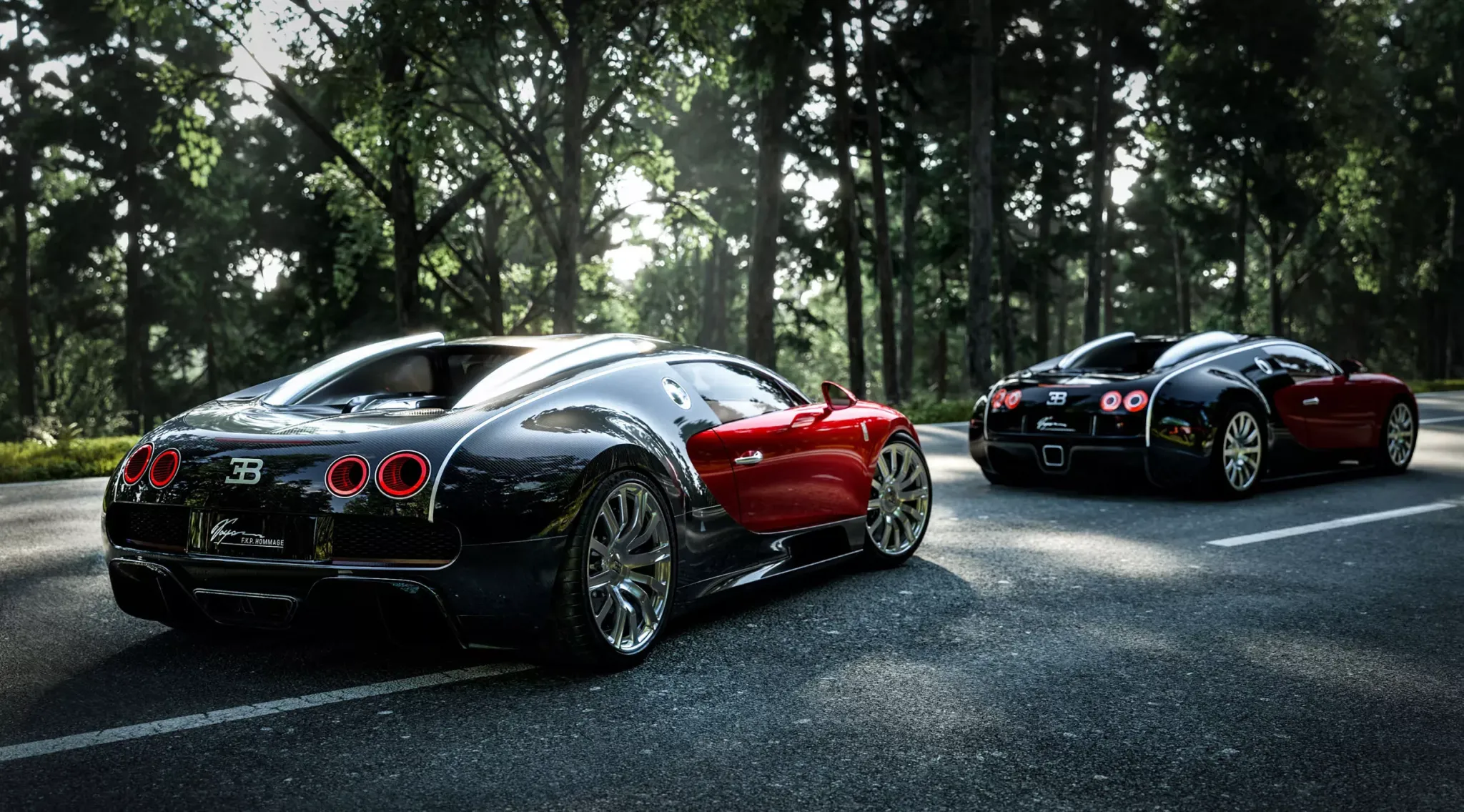 Отдельный акцент сделан на окраске. Красно-чёрная гамма отсылает к концепту Veyron 2003 года, но выполнена с использованием современной технологии: красный слой нанесён поверх серебристой основы ради глубины и «живого» оттенка, а чёрная зона — это открытое углеволокно с тонированным прозрачным покрытием. На солнце такой подход работает иначе, чем обычная двухцветная эмаль: оттенок меняется в зависимости от угла и освещения, а структура материала остаётся частью образа. Колёса стали крупнее, а шины — современными Michelin, что подчёркивает: проект создан не только для витрины, а как полноценный дорожный автомобиль.