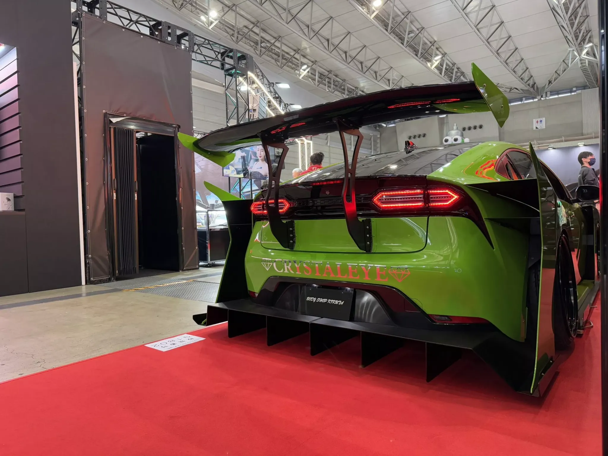 Отдельная гордость проекта — светотехника. Crystal Eye установила собственные задние фонари с шестигранной графикой на светодиодах. Важно, что это не уникальная деталь «в единственном экземпляре»: компания заявляет, что такие фонари планирует предлагать на рынке послепродажных деталей, и выставочный Prius как раз служит яркой витриной для будущего продукта. На фотографиях особенно заметно, как новая оптика меняет восприятие кормы: вместо привычных линий — «соты», которые поддерживают техно-настрой всего кузова.