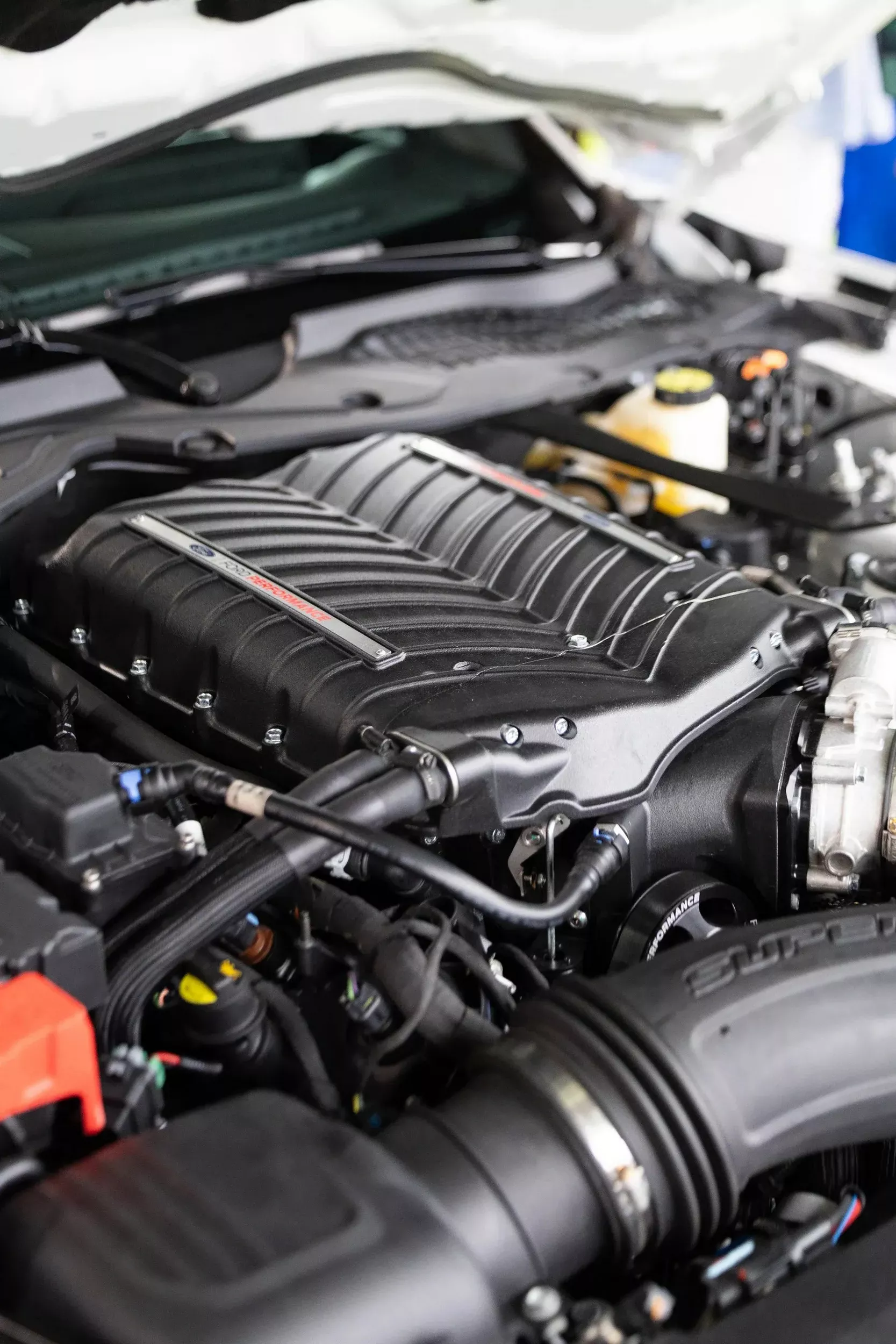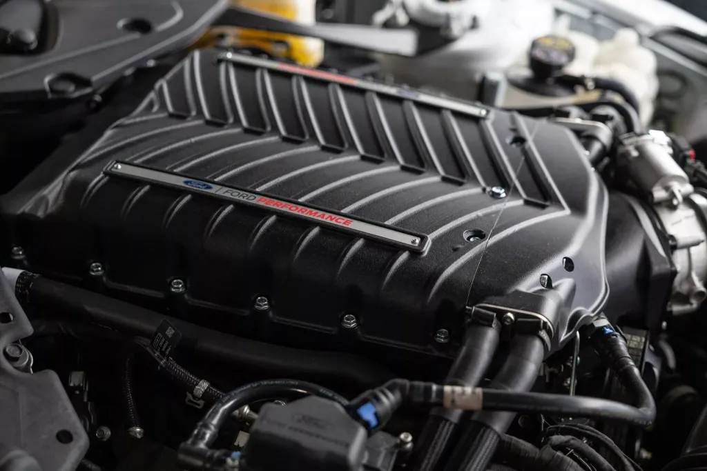 Сам комплект для Mustang включает компрессор Whipple Gen 6 объемом 3,0 литра с двухвинтовой схемой, фирменный двухконтурный интеркулер, дроссельный узел на 92 мм, более холодные свечи зажигания, форсунки портового впрыска от Shelby GT500, эксклюзивную калибровку Ford Racing Parts и устройство Tomahawk для загрузки программного обеспечения. Иными словами, речь идет не о «гаражной» переделке с одной лишь заменой шкива, а о комплексном заводском решении, адаптированном под современный Mustang с учетом работы электроники, топливной системы и тепловых режимов.